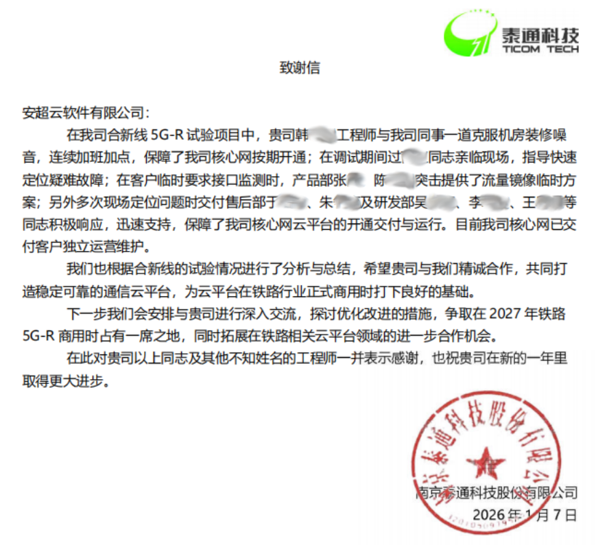 安超OS超融合蠡湖股份项目在约定周期内完成项目的硬件供货、部署、联调、测试、上线、试运行和培训工作。