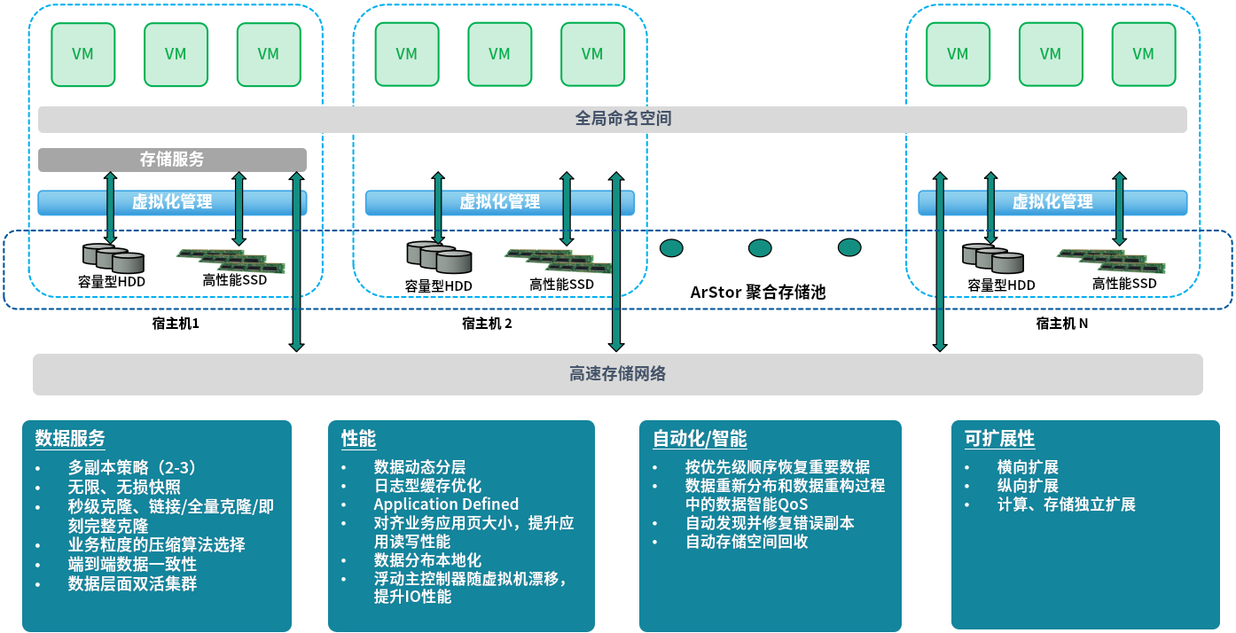 宝通科技在操作运维安超OS云平台时,所有管理策略可以虚拟机和业务为核心,不需要配置或管理卷、LUN、RAID等需求,从根本上简化了存储管理。