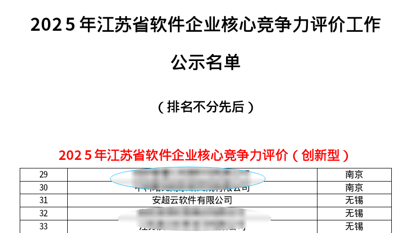 安超云成功入选2025年江苏省软件核心竞争力企业